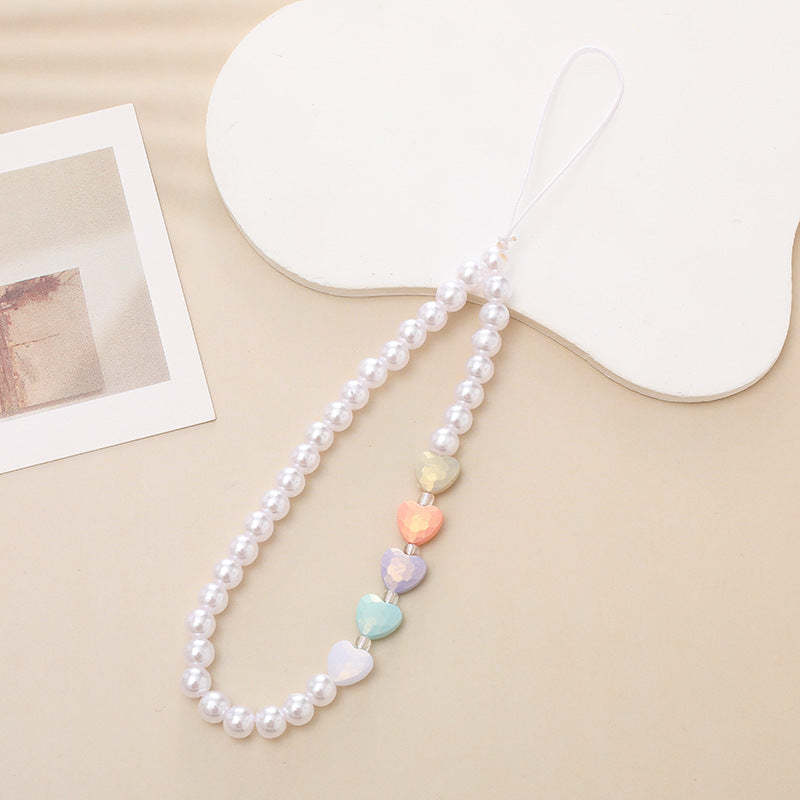 White Pearl Phone Charm with Four Different Color Hearts Gifts for Her