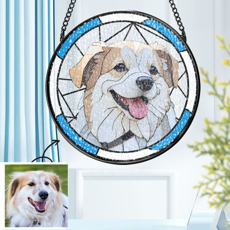 Pagina iniziale / Custom Dog Portrait From Photo Custom Dog Sun Catcher Colored Stained Glass Dog Memorial Gift Unique Personalized Gift For Pet Lovers